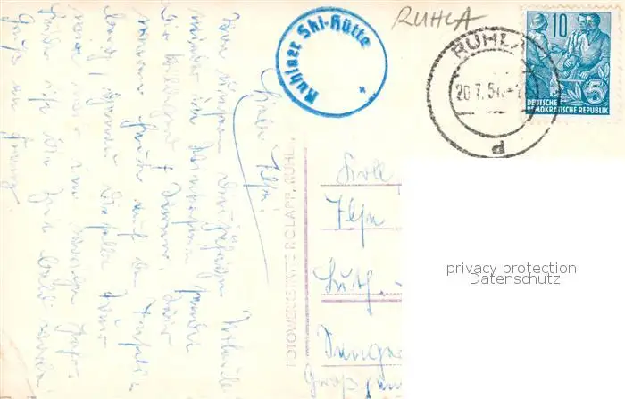 73797628 Ruhla Ruhlaer Skihuette Ruhla postalisch gelaufen 1954 Erhaltung siehe scans [WerneD78] [WernPID7 ]