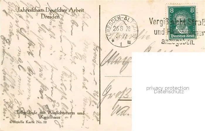 73807168 Dresden_Elbe Jahresschau Deutscher Arbeit postalisch gelaufen 1928 Erhaltung siehe scans [WerneD78] [WernPID7 ]