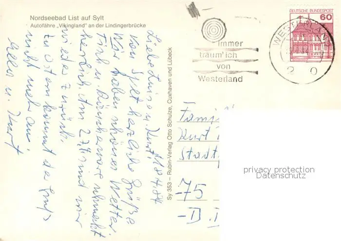 73819670 Faehre Nordseebad List auf Sylt Autofaehre VIKINGLAND postalisch gelaufen 1984 Erhaltung siehe scans [IrynaD87] [Iryn PID ]
