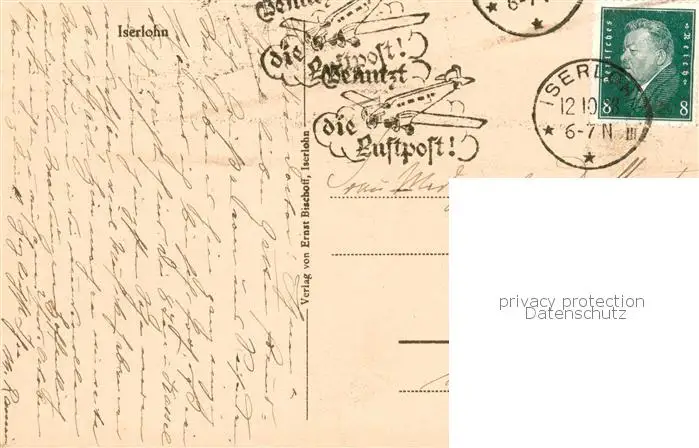 73820700 Iserlohn Stadtpanorama Iserlohn postalisch gelaufen 1938 Erhaltung siehe scans [FriedD77] [Frierer ]