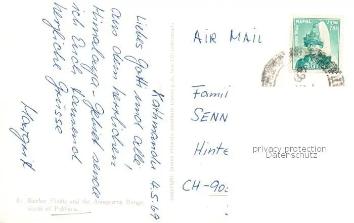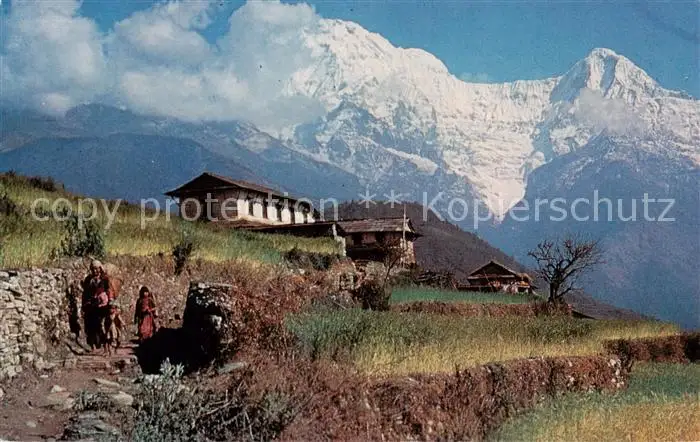 73846795 Pokhara_Nepal Barley Fields and the Annapurna Range postalisch gelaufen 1969 Erhaltung siehe scans [WerneD78] [WernPID7 ]