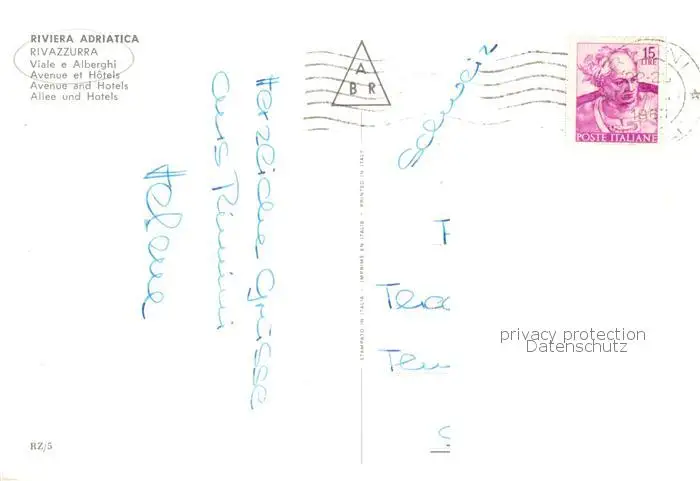 73847658 Rivazzurra_IT Viale e Alberghi postalisch gelaufen nach 1965 Erhaltung siehe scans [WerneD78] [WernPID7 ]