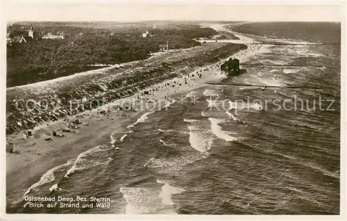73849857 Deep__Mrzezyno_Ostseebad_PL Blick auf Strand und Wald postalisch gelaufen 1933 Fliegeraufnahme Erhaltung siehe scans [FriedD77] Fliegeraufnahme[Frierer ]