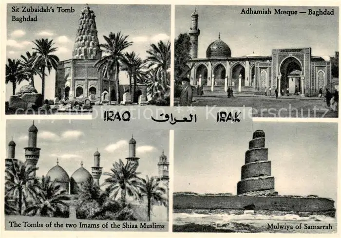73854897 Bagdad_Baghdad_Irak Sit Zubaidahs Tomb Adhamiah Mosque Tombs of the Imans of the Shiaa Muslims Mulwiya of Samarrah postalisch nicht gelaufen 1958 Erhaltung siehe scans [FriedD77] [Frierer ]