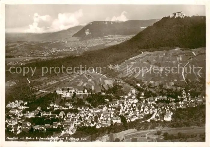 73855376 Neuffen mit Ruine Hohenneuffen Neuffen postalisch gelaufen 1948 Fliegeraufnahme Erhaltung siehe scans [FriedD77] Fliegeraufnahme[Frierer ]
