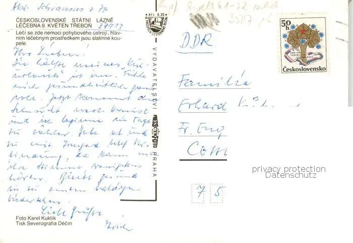 73859138 Trebon_CZ Ceskoslovenske Statni Lazne Lecebna 9. Kveten postalisch gelaufen 1977 Erhaltung siehe scans [WerneD78] [WernPID7 ]