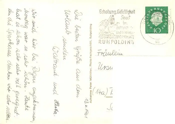 73863873 Ruhpolding Ortsansicht mit Kirche Ruhpolding postalisch gelaufen 1961 Erhaltung siehe scans [FriedD77] [Frierer ]
