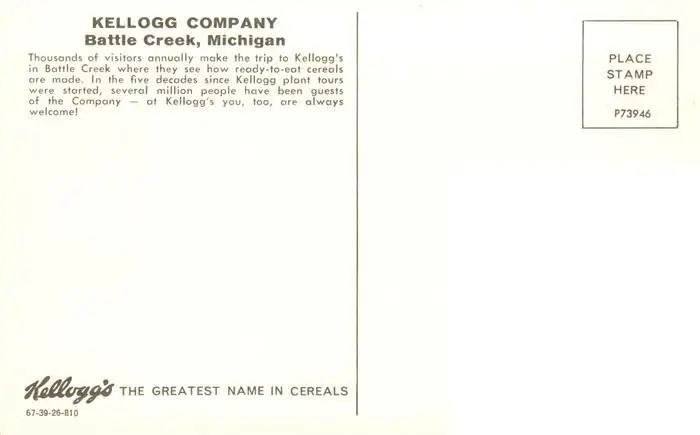 73880390 Battle_Creek_Michigan Kellog Company postalisch nicht gelaufen nach 1965 Erhaltung siehe scans [WerneD78] [WernPID7 ]