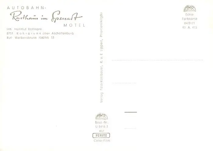 73888985 Rohrbrunn Autobahn Rasthaus im Spessart Hotel Rohrbrunn postalisch nicht gelaufen nach 1965 Erhaltung siehe scans [WerneD78] [WernPID7 ]