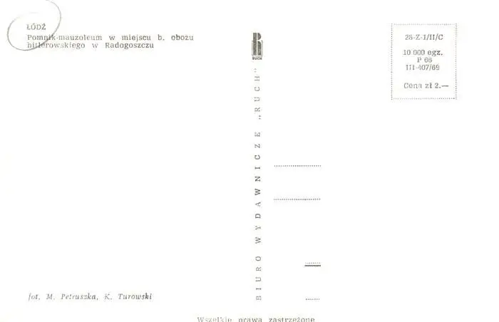 73892139 Radogoszcz_Lodz_Litzmannstadt_PL Pomnik mauzoleum w miesjscu b obozu hitlerowskiego w Radogoszczu postalisch nicht gelaufen nach 1965 Erhaltung siehe scans [FriedD77] [Frierer ]