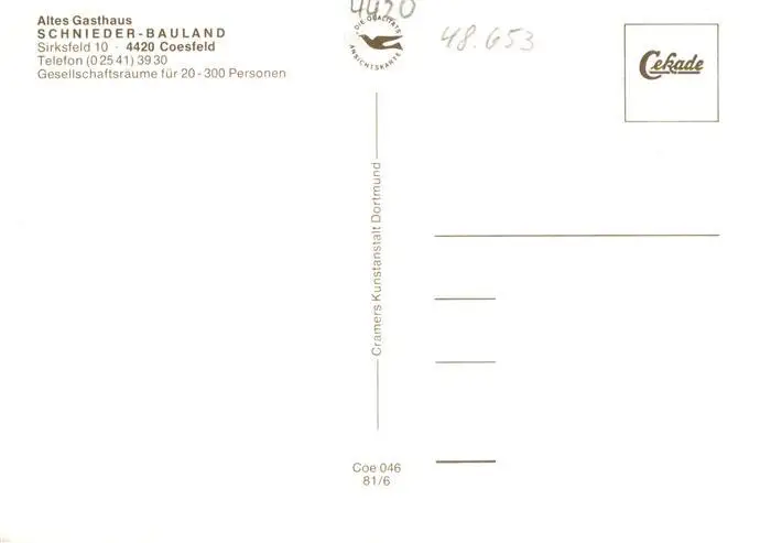 73894140 Coesfeld Altes Gasthaus Schnieder Bauland Gastraeume Tierpark Coesfeld postalisch nicht gelaufen nach 1965 Erhaltung siehe scans [WerneD78] [WernPID7 ]