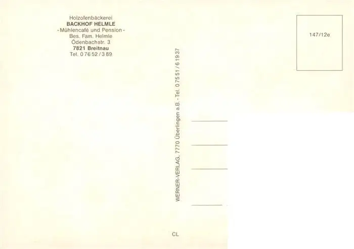 73903286 Breitnau Holzofenbaeckerei Backhof Helmle Muehlencafe und Pension Breitnau postalisch nicht gelaufen nach 1965 Erhaltung siehe scans [FriedD77] [Frierer ]