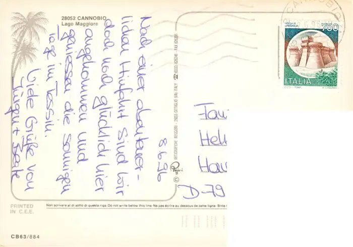73915465 Cannobio_Lago_Maggiore_IT Hafenpartie Gassen Motive postalisch gelaufen 1996 Erhaltung siehe scans [FriedD77] [Frierer ]