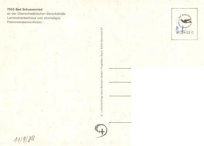 73950584 Bad_Schussenried Landeskrankenhaus und ehemaliges Praemonstratenserkloster postalisch nicht gelaufen 1988 Fliegeraufnahme Erhaltung siehe scans [FriedD77] Fliegeraufnahme[Frierer ]