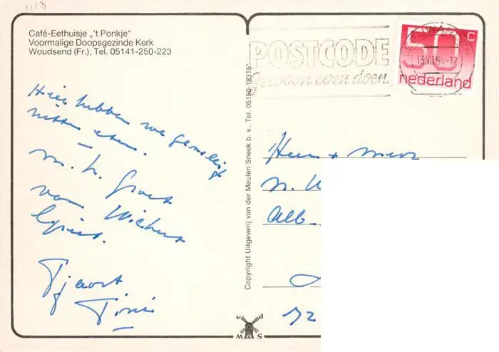 73953949 Woudsend Café Eethuisje 't Ponkje voormalige Doopsgezinde Kerk postalisch gelaufen 1984 Erhaltung siehe scans [FriedD77] [Frierer ]