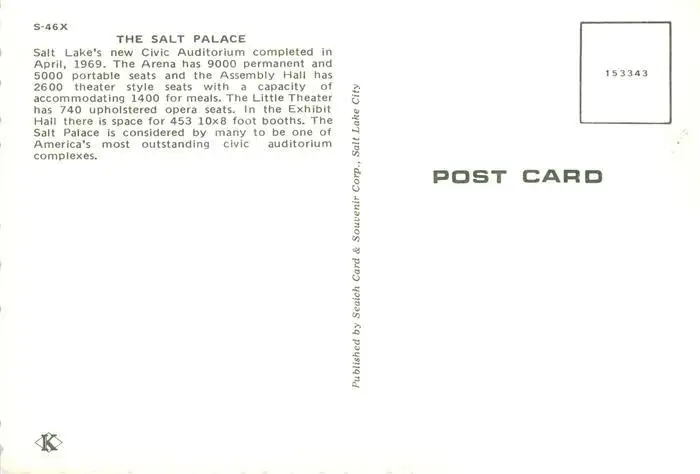 73954499 Salt_Lake_City_Utah_USA The Salt Palace postalisch nicht gelaufen nach 1965 Erhaltung siehe scans [WerneD78] [WernPID7 ]