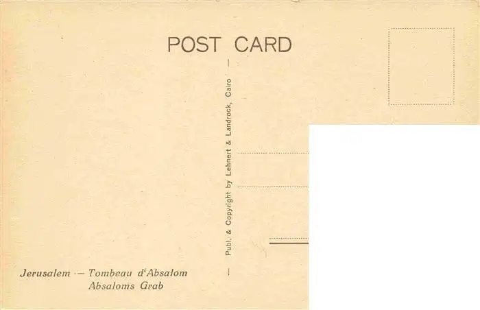 73965302 Jerusalem__Yerushalayim_Israel Tombeau d'Absalom Grab postalisch nicht gelaufen 1921-1965 Erhaltung siehe scans [FriedD77] [Frierer ]