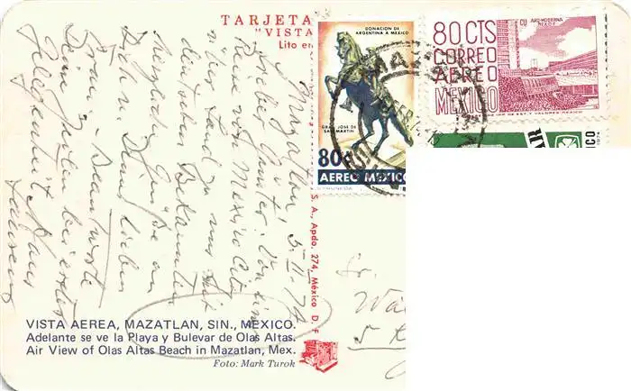 73972197 Mazatlan_Sinaloa_Mexico Vista aérea postalisch gelaufen 1974 Fliegeraufnahme Erhaltung siehe scans [FriedD77] Fliegeraufnahme[Frierer ]