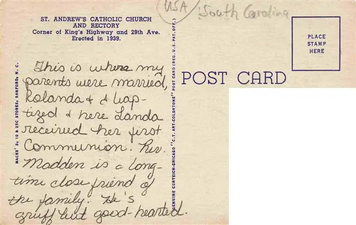 Ein Angebot in Ansichtskarten South Carolina - 700 weitere Angebote in dieser Kategorie