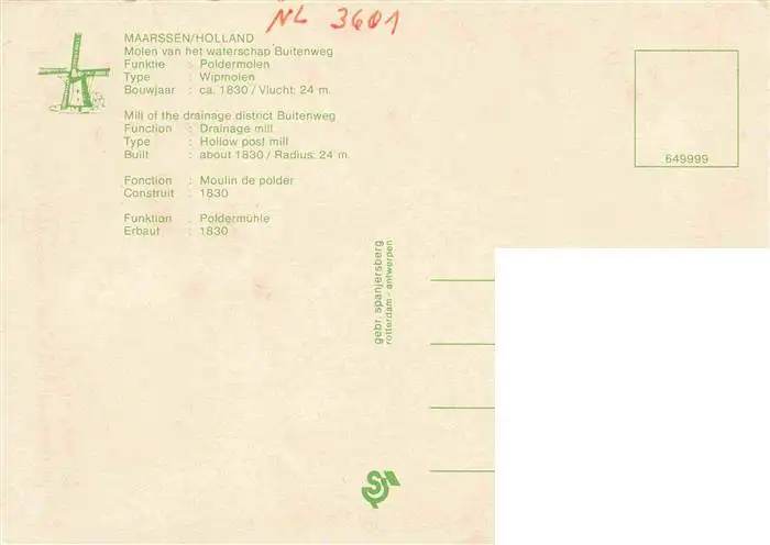 73980974 Maarssen Molen van het waterschap Buitenweg Poldermuehle postalisch nicht gelaufen nach 1965 Erhaltung siehe scans [FriedD77] [Frierer ]