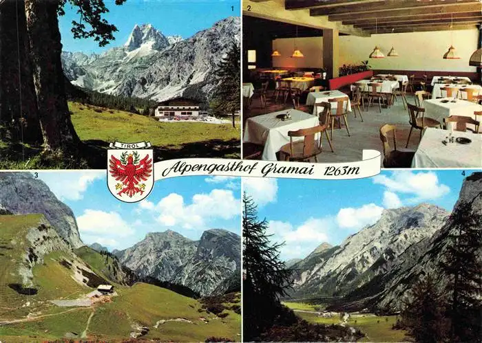 AK / Ansichtskarte 73984749 Gramaialm_1263m_Falzthurntal_Tirol_AT Alpengasthof Gramai mit Lamsen Spitze Speisesaal Rappenspitze Drist K und Rappenspitze