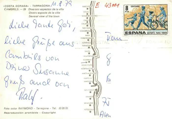 73984912 Cambrils_Costa_Dorada_ES Diversos aspectos De la Villa postalisch gelaufen 1979 Erhaltung siehe scans [WerneD78] [WernPID7 ]