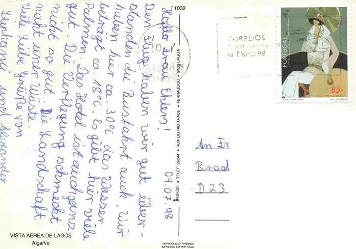 73986760 Lagos_Algarve_Faro_PT Fliegeraufnahme postalisch gelaufen 1998 Erhaltung siehe scans [WerneD78] [WernPID7 ]