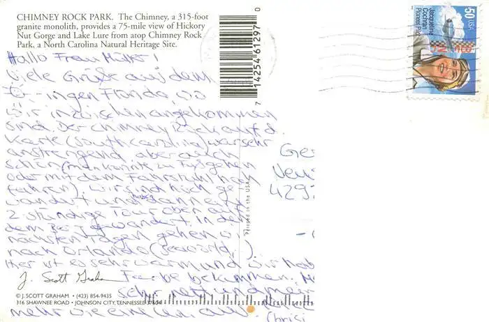 73993556 Chimney_Rock_Park_North_Carolina_USA Fliegeraufnahme postalisch gelaufen nach 1965 Erhaltung siehe scans [FriedD77] [Frierer ]