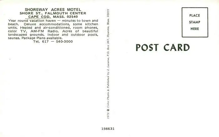 73993845 Cape_Cod_Massachusetts_USA Shoreway Acres Motel Shore St Falmouth Center postalisch nicht gelaufen nach 1965 Erhaltung siehe scans [WerneD78] [WernPID7 ]