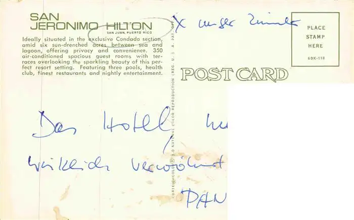 73994039 San_Juan__Puerto_Rico San Jeronimo Hilton postalisch nicht gelaufen 1921-1965 Erhaltung siehe scans [WerneD78] [WernPID7 ]