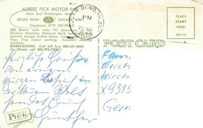 73994194 South_Bend_Indiana_USA Albert Pick Motor Inn 1976 Erhaltung siehe scans [WerneD78] [WernPID7 ]