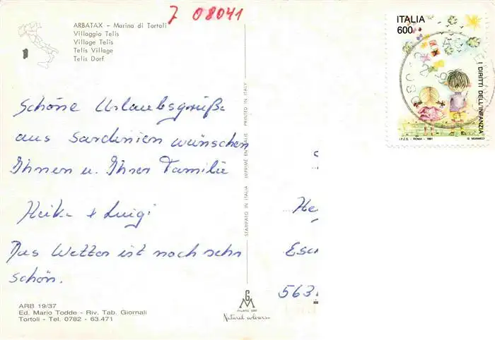 73998022 Arbatax Marina di Tortoli Villagio Telis postalisch gelaufen nach 1965 Erhaltung siehe scans [WerneD78] [WernPID7 ]