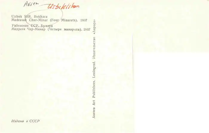 73999881 Bokhara_Buchara_Buxoro_Usbekistan Madrasan Char Minar postalisch nicht gelaufen 1921-1965 Erhaltung siehe scans [FriedD77] [Frierer ]
