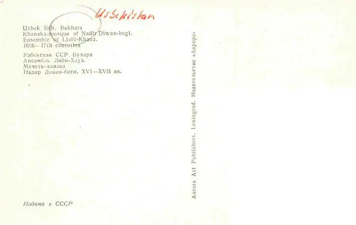 73999883 Bokhara_Buchara_Buxoro_Usbekistan Khanaka mosque of Nadir Diwan begi Ensemble of Liabi Khauz postalisch nicht gelaufen 1921-1965 Erhaltung siehe scans [FriedD77] [Frierer ]