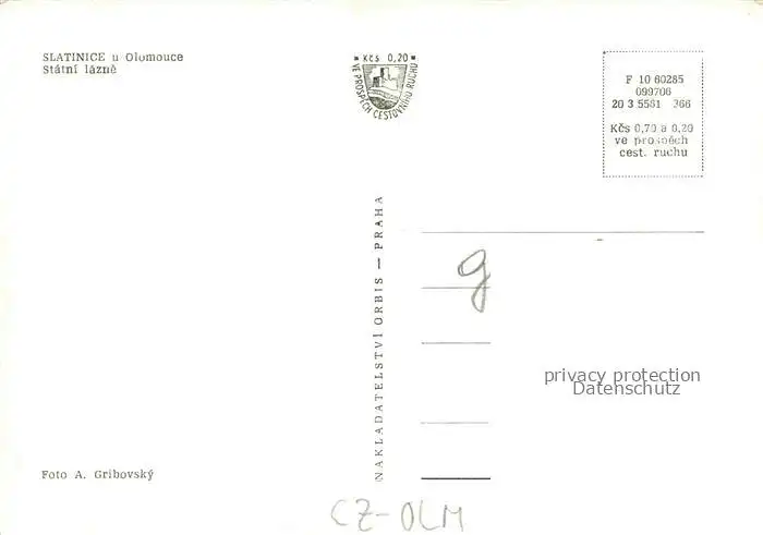 74002170 Slatinice_u_OLOMOUCE_Olmuetz_CZ Statni lazne postalisch nicht gelaufen nach 1965 Erhaltung siehe scans [FriedD77] [Frierer ]