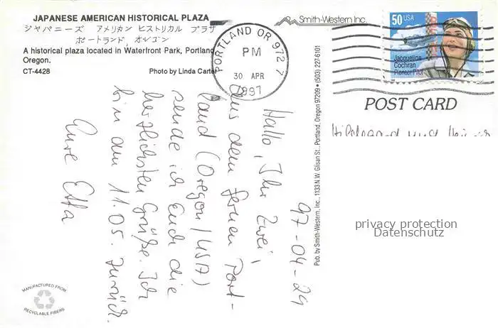 74003285 Portland_Oregon_USA Waterfront Park postalisch gelaufen 1997 Erhaltung siehe scans [FriedD77] [Frierer ]