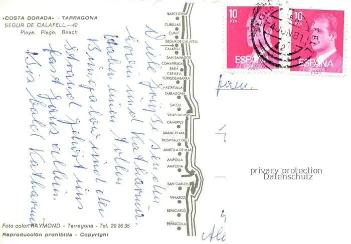 74003313 Segur_de_Calafell_Tarragona_ES Playa Fliegeraufnahme postalisch gelaufen 1981 Erhaltung siehe scans [FriedD77] [Frierer ]