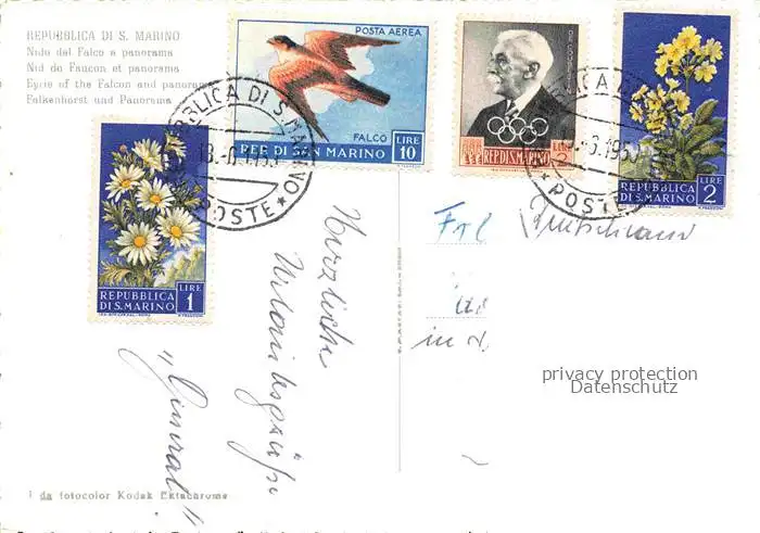 74003759 Repubblica_di_San_Marino Nido del Falco e panorama postalisch gelaufen 1959 Erhaltung siehe scans [FriedD77] [Frierer ]