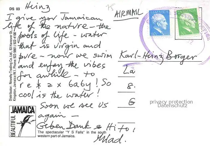 74004374 Jamaica__Caribic YS Falls postalisch gelaufen nach 1965 Erhaltung siehe scans [FriedD77] [Frierer ]