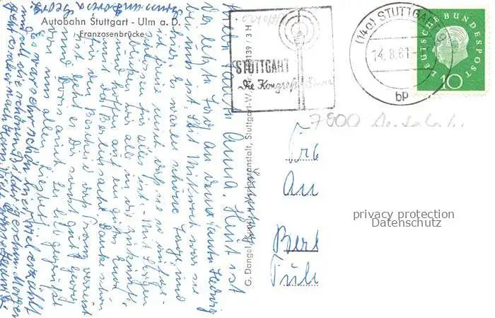 alte Postkarte 74007661 Autobahn Autostrada Autoroute Highway Stuttgart Ulm a.D. Franzosenbruecke postalisch gelaufen Erhaltung siehe scans [IrynaD87] [Iryn PID ]