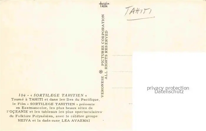 74008752 Tahiti Polynesia Sortilege Tahitien postalisch nicht gelaufen Erhaltung siehe scans [WerneD78] [WernPID7 ]