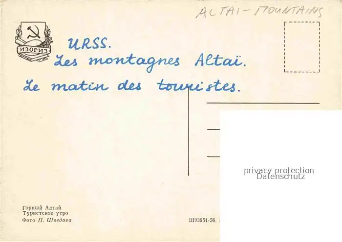 74013619 Altai-Mountains Altai-Gebirge Mongolia Le matin des touristes postalisch nicht gelaufen Erhaltung siehe scans [FriedD77]