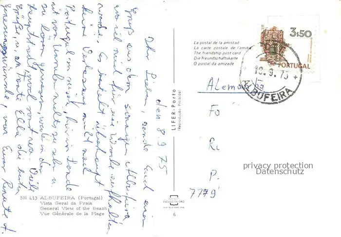 old postcard 74018296 Albufeira PT Vista general da praia Strand postalisch gelaufen Erhaltung siehe scans [FriedD77]