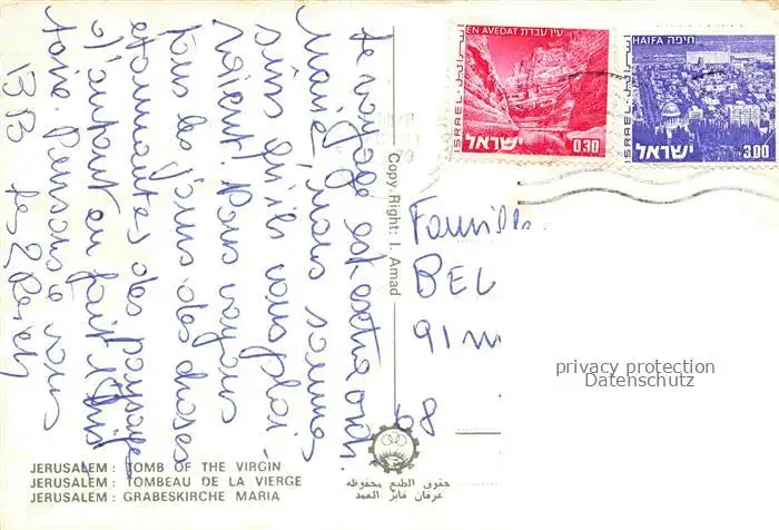 old postcard 74018845 Jerusalem Yerushalayim Israel Grabeskirche Maria postalisch gelaufen Erhaltung siehe scans [FriedD77]