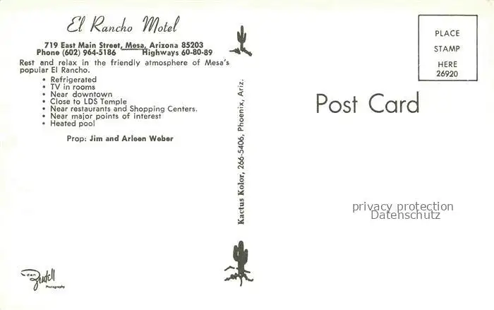 74024636 Mesa Arizona USA El Rancho Motel postalisch nicht gelaufen Erhaltung siehe scans [FriedD77]