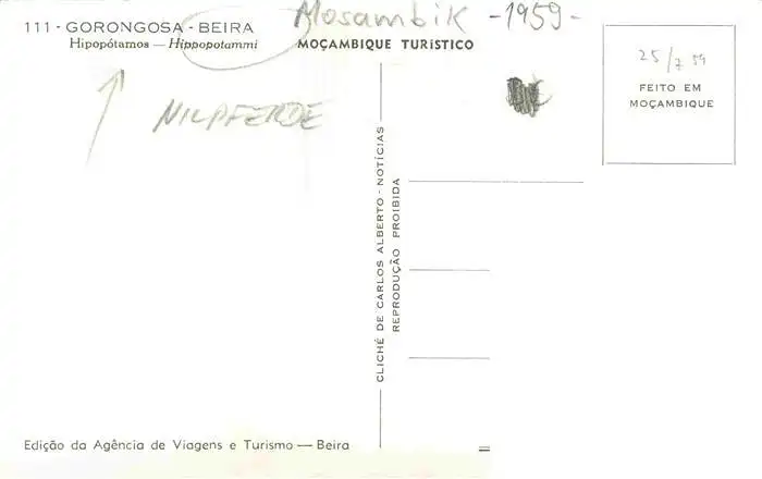 74033676 Beira Mocambique Gorongosa Hipopotamas postalisch nicht gelaufen Erhaltung siehe scans [IrynaD87]