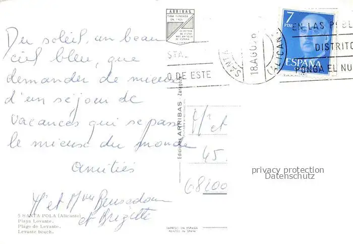 old postcard 74035110 Santa Pola Alicante ES Playa Levante postalisch gelaufen Erhaltung siehe scans [FriedD77]