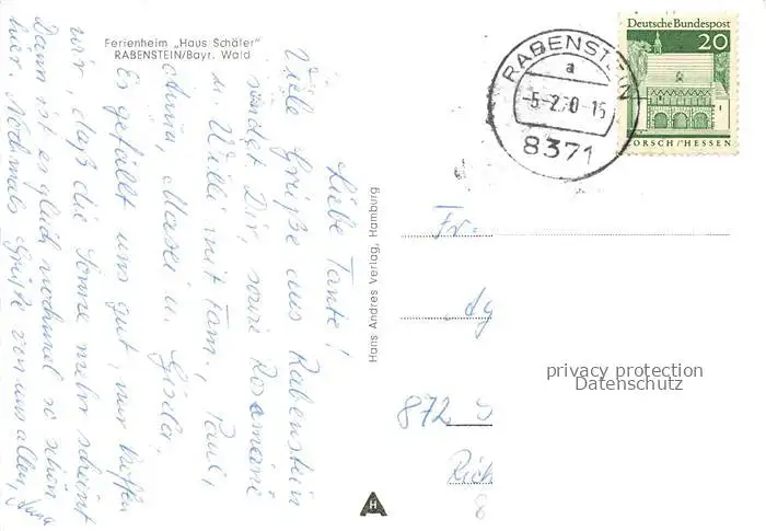 alte Postkarte 74037805 Rabenstein Zwiesel Ferienheim Haus Schaefer postalisch gelaufen Erhaltung siehe scans [WerneD78]