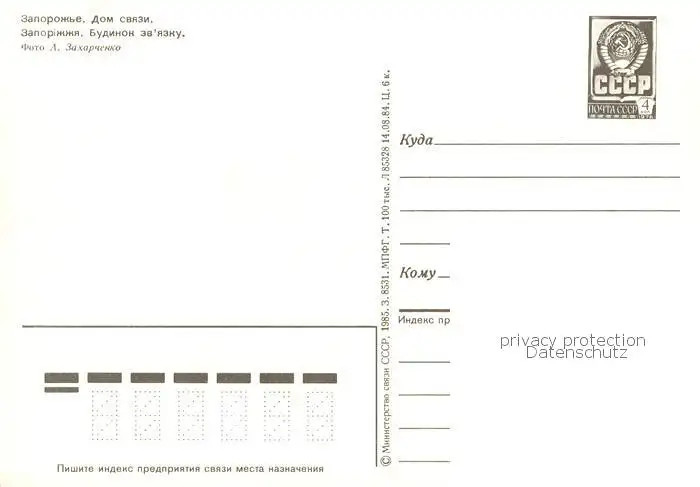 74038439 Zaporizhzhya Kommunikationshaus postalisch nicht gelaufen Erhaltung siehe scans [IrynaD87]