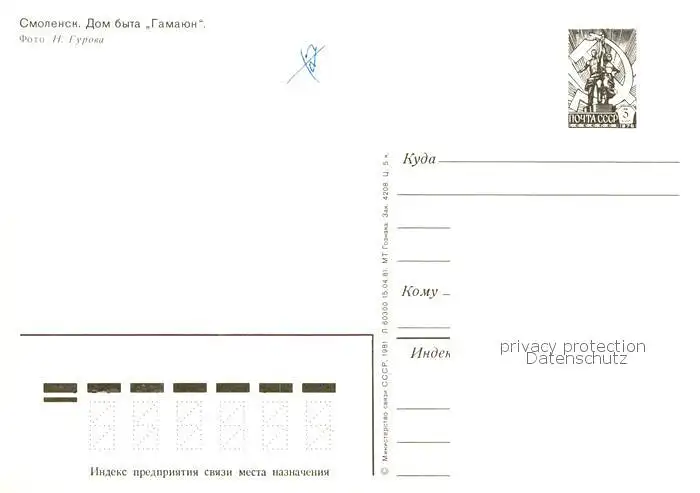 74038689 Smolensk RU Servicehaus postalisch nicht gelaufen Erhaltung siehe scans [IrynaD87]